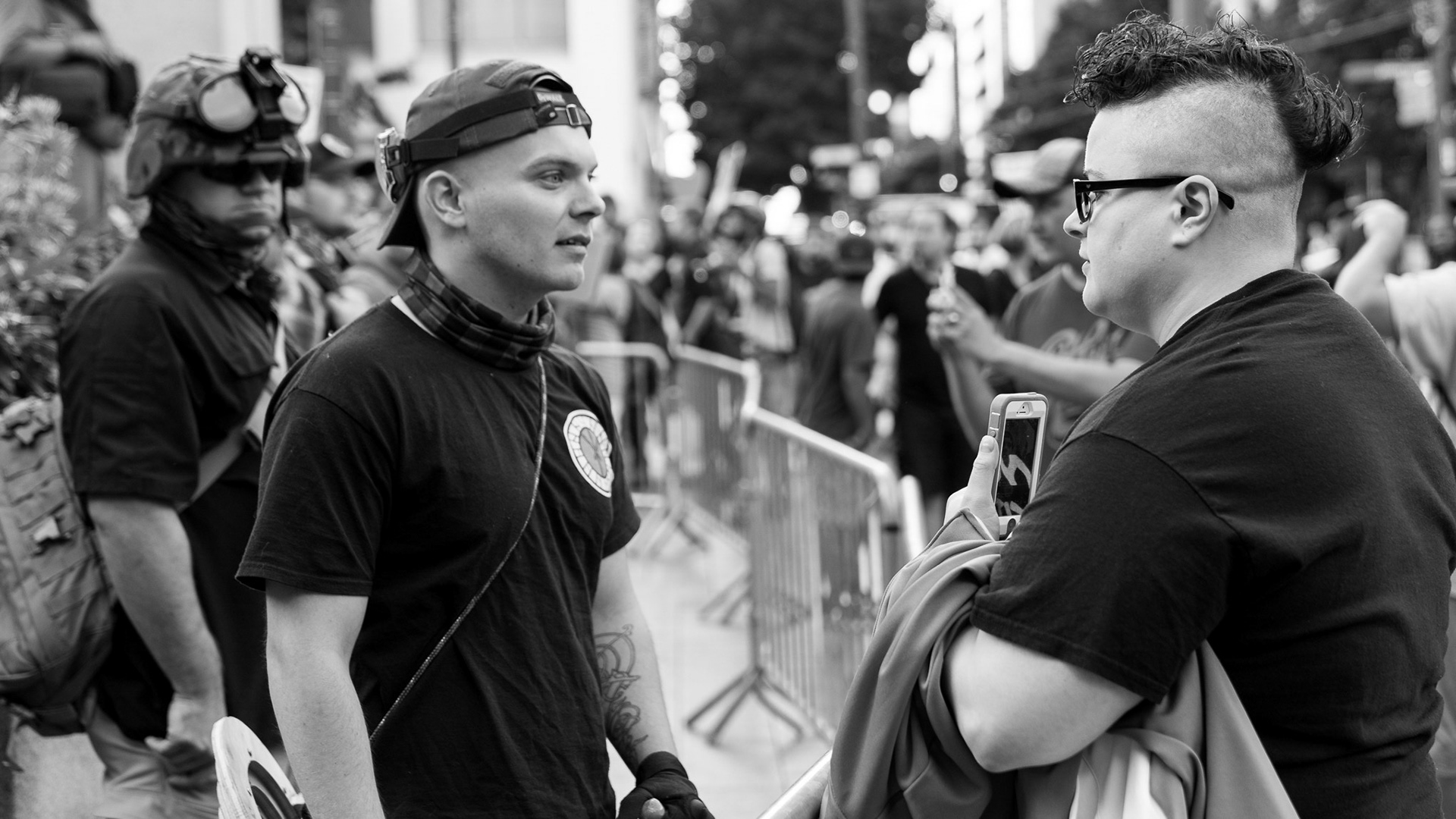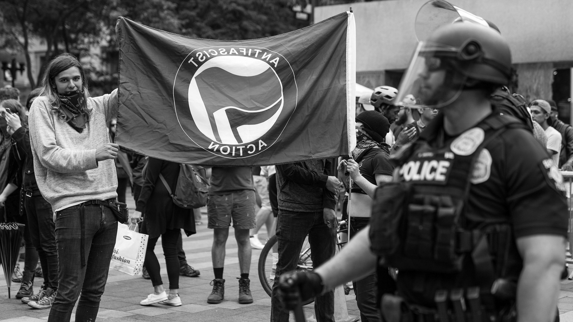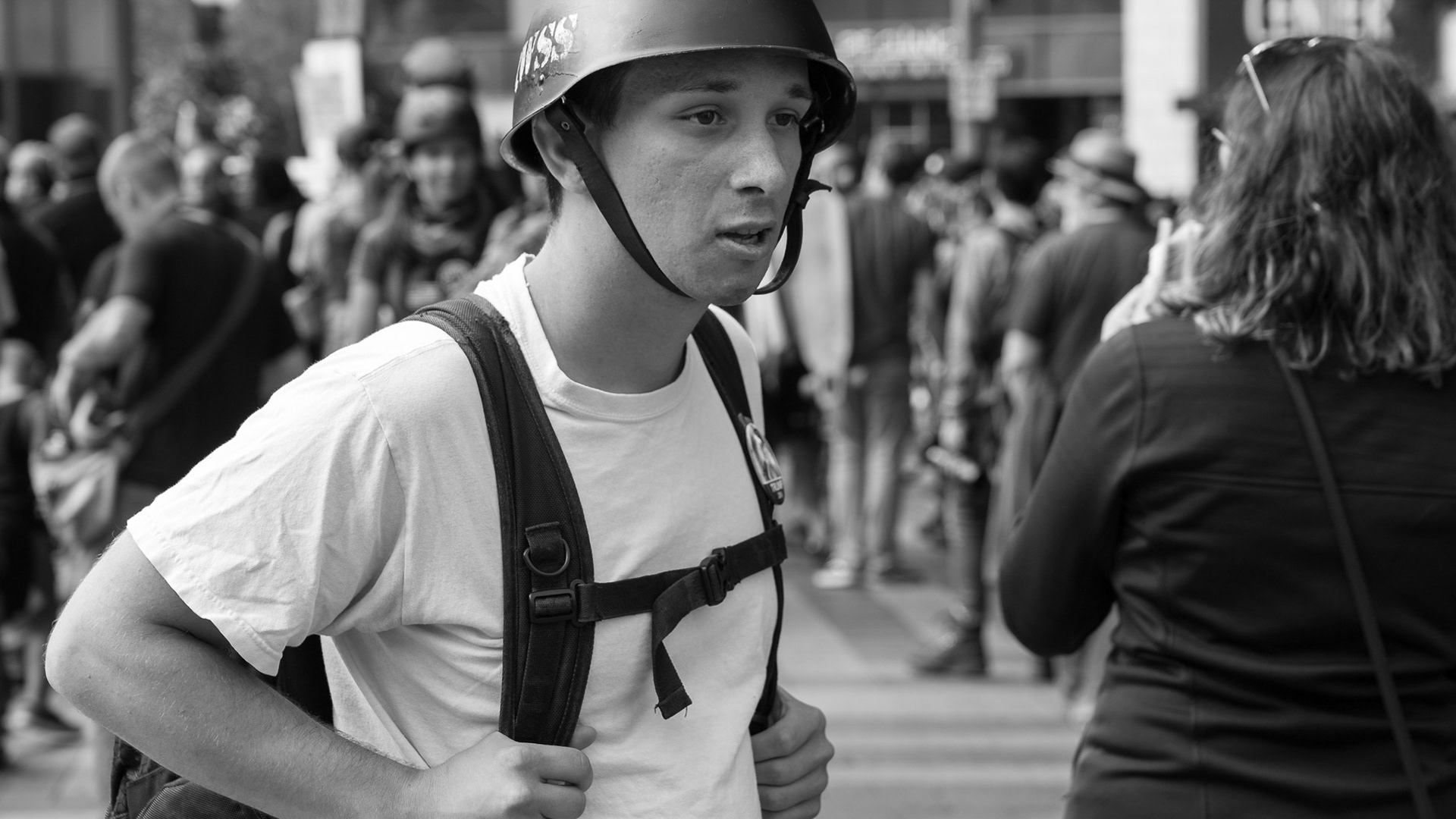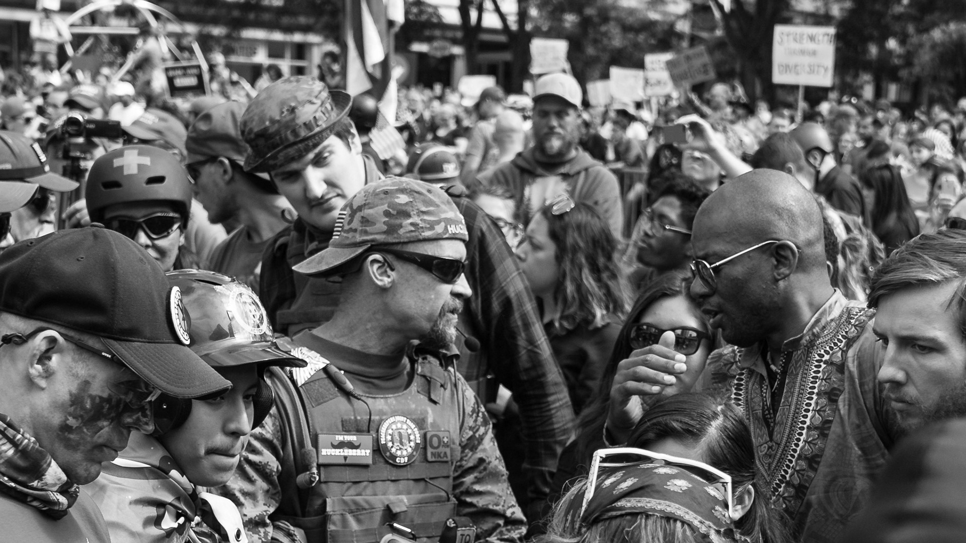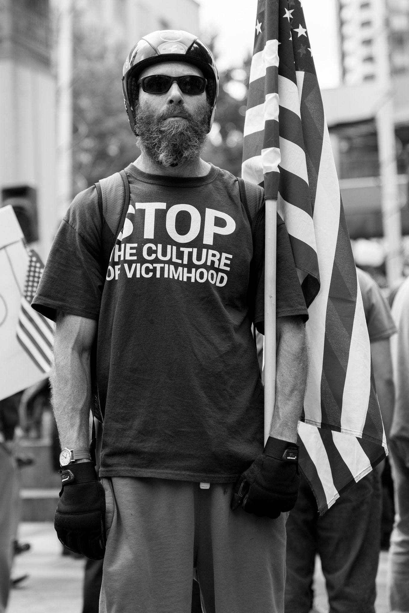 Shot at a Patriot Prayer rally in downtown Seattle. The goal was to simply observe and capture the event. It became very tense at times with both sides expressing frustration and anger revealing a deeply divided America.