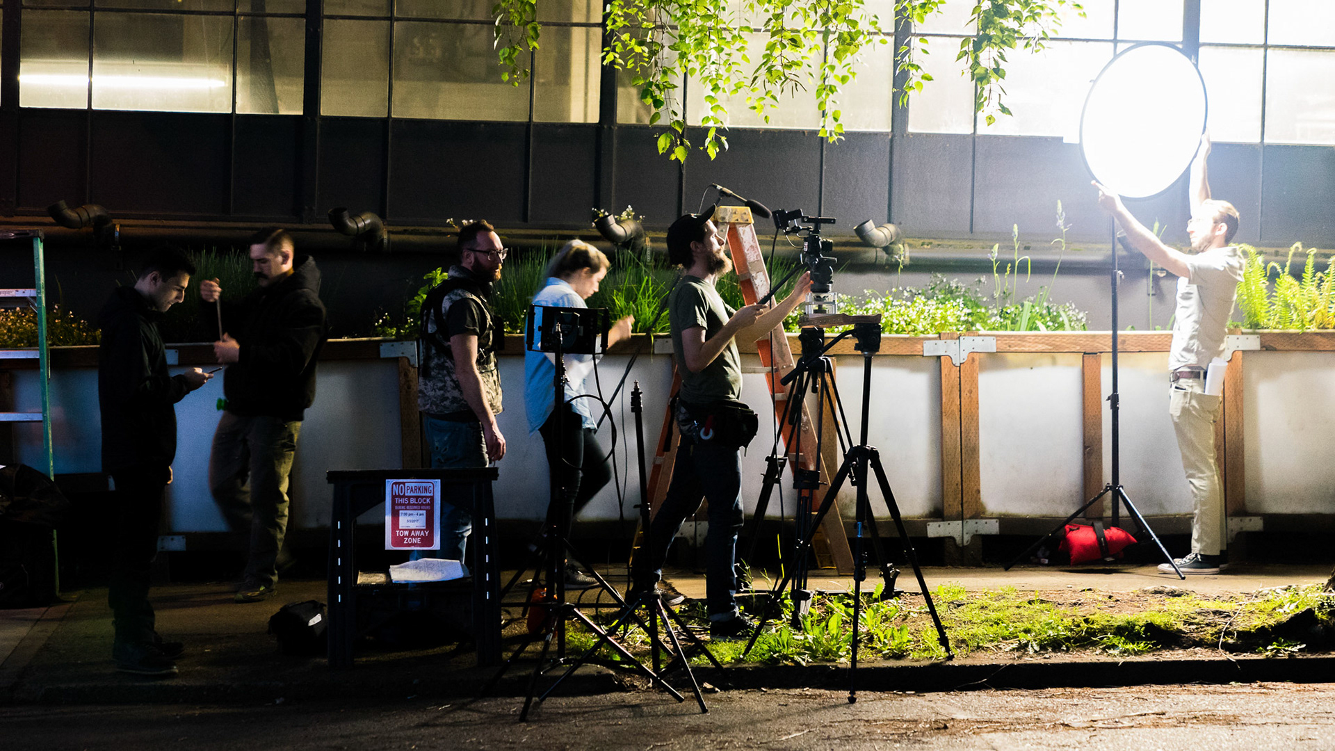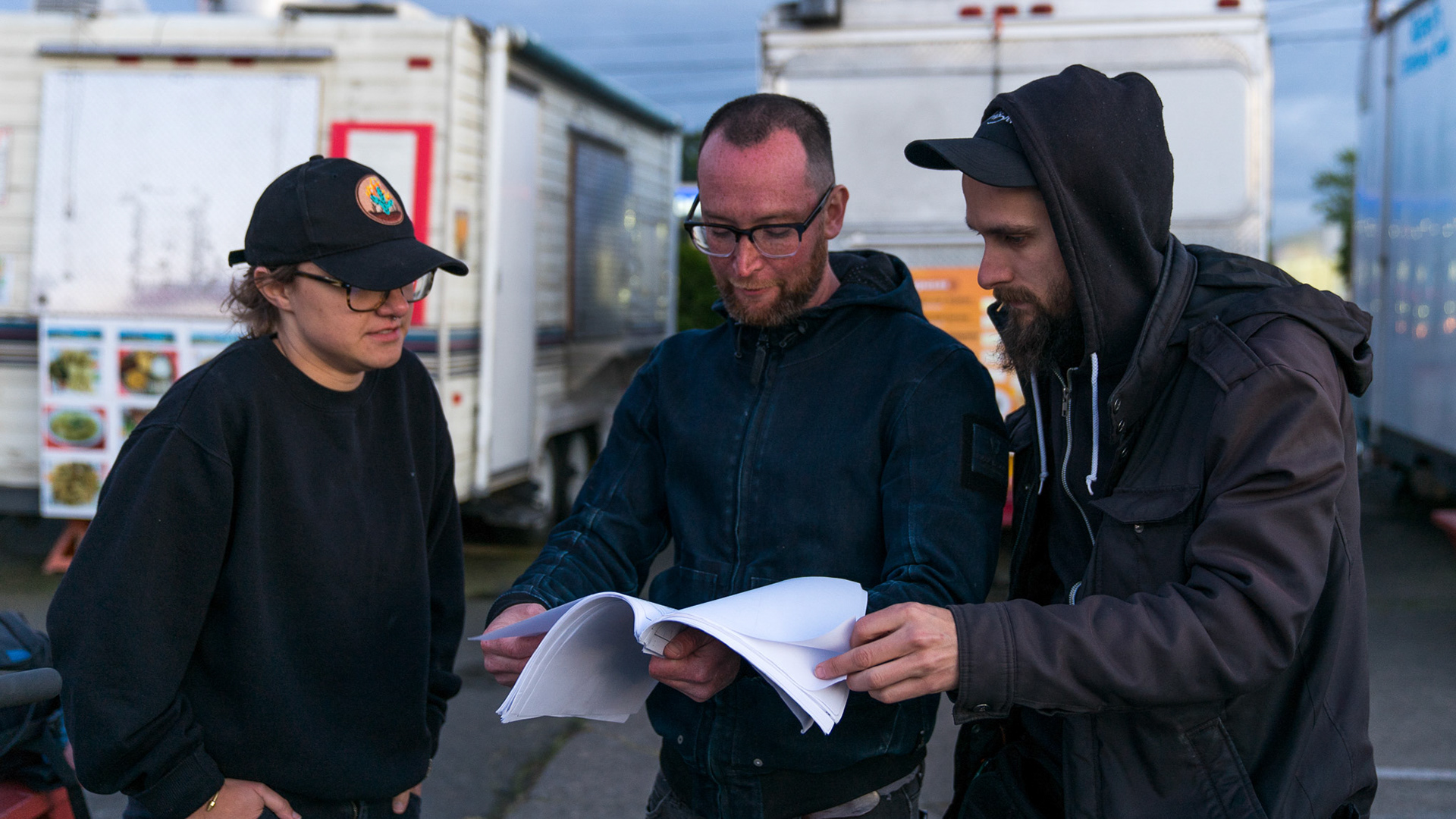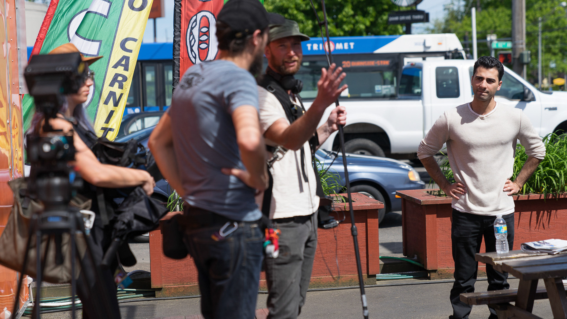 Behind the scenes photos shot during the production of my short film Food Cart.
